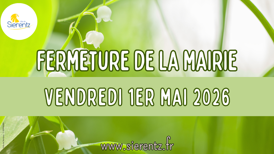 La mairie sera fermée vendredi 1er mai 2026. Réouverture lundi 4 mai 2026 à 9h.