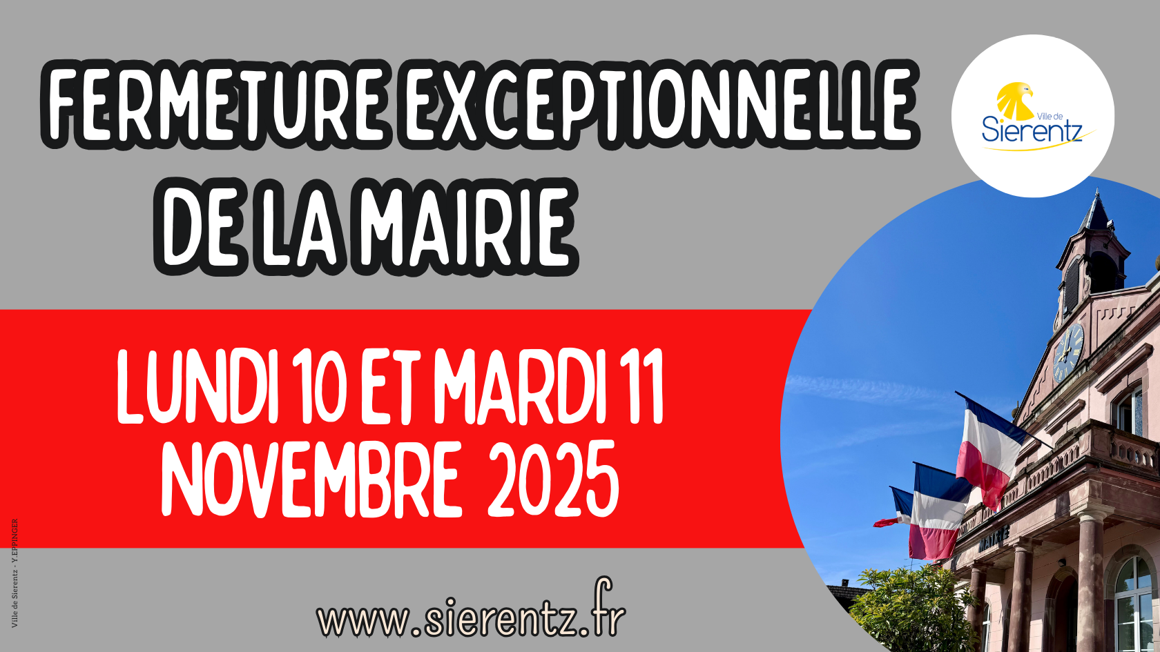 La mairie sera fermée lundi 10 et mardi 11 novembre 2025.