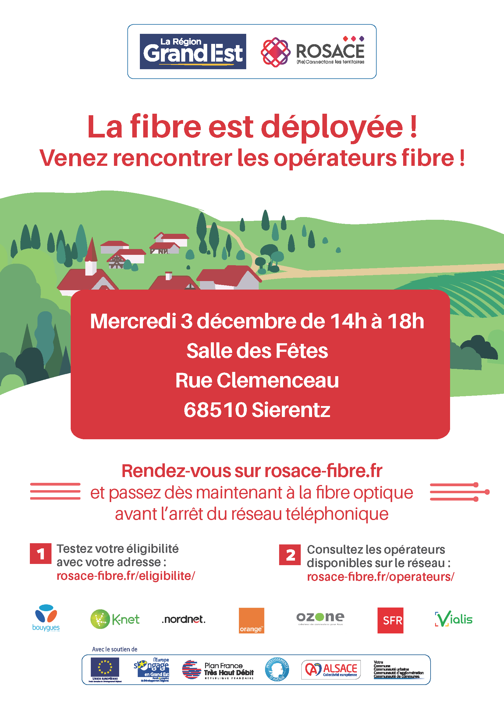 Nos équipes seront sur place en présence de nos Fournisseurs d’Accès Internet (FAI) Orange et Vialis. Si vous avez déjà effectué vos démarches, pensez à accompagner votre entourage, nos ainés !